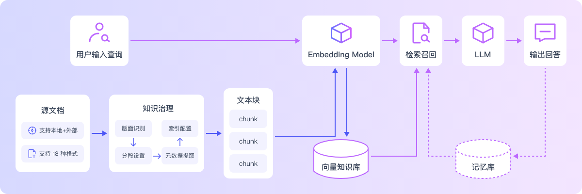 多数据源知识整合管理 · 支持多种格式的知识应用 · 精细化企业级数据权限管理