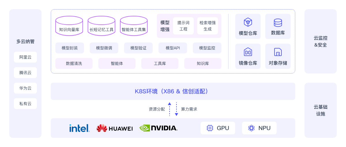 不同算力资源共享交互 · K8S统一调度及运维 · 多租户权限管理